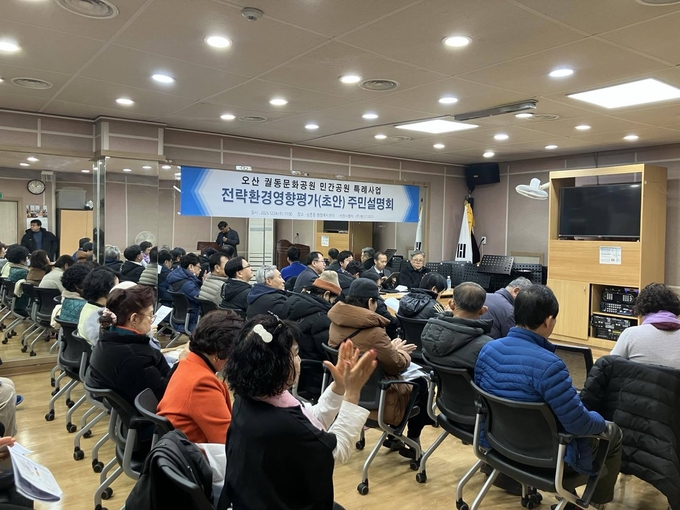 오산시 남촌동 행정복지센터는 지난 24일 궐동문화공원 조성사업과 관련한 환경영향평가 주민설명회를 개최하고, 지역 주민 60여 명을 대상으로 사업 내용을 공유하며 의견을 수렴했다고 26일 밝혔다.