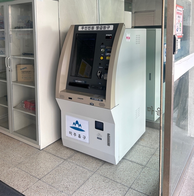 이번에 설치한 발급기는 지난해 11월 인하대학교에서 이전한 것으로, 주민 접근성 향상을 위해 기존 청사 내부에 있던 기기를 외부 출입구로 전면 배치했다.
