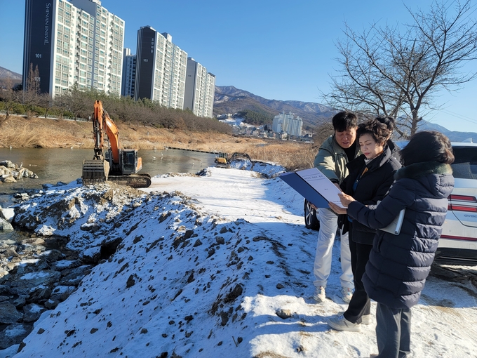 황미상 용인시의원, 하마산 보 설치 공사 현장 점검