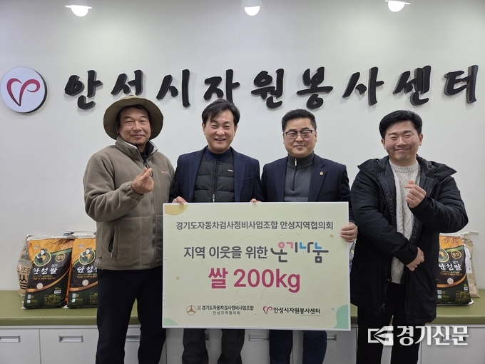 안성시자원봉사센터는 지난 12일 (사)경기도자동차검사정비사업조합 안성협의회로부터 관내 어려운 이웃을 위한 쌀 200kg을 전달받았다고 14일 밝혔다.