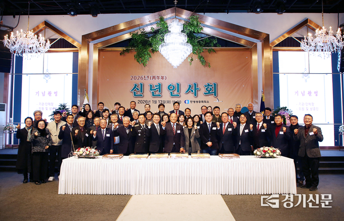 안성상공회의소는 지난 13일 오전 THE AW 웨딩컨벤션에서 ‘2026년 신년인사회’를 개최하고, 지역경제 활성화와 기업 경쟁력 강화를 위한 새해 비전을 공유했다고 14일 밝혔다.