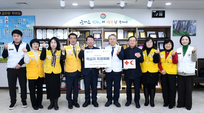 구리시는 15일 시청 3층 시장실에서 대한적십자사 경기도지사에 어려운 이웃을 돕기 위한 2026년 적십자 특별회비 100만 원을 전달했다고 밝혔다.