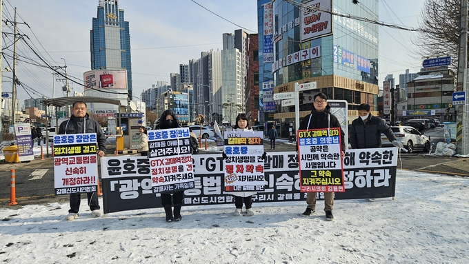 구리시 갈매동 주민들이 ‘GTX-B 노선 갈매역 정차’ 문제와 관련해, 지역 국회의원인 윤호중 의원의 책임 있는 소통과 공개 약속 이행을 촉구하며 이틀째 집회에 나섰다.