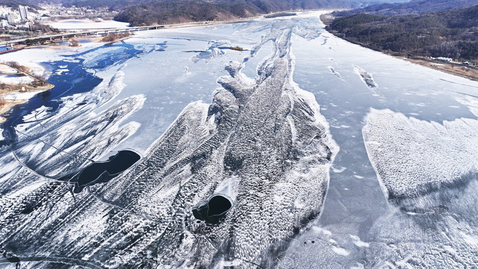 강추위에 멈춘 물길… 두물머리 남한강 얼음장