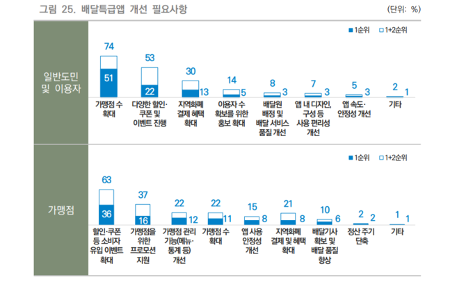 반면 배달특급 이용자들은 앱 개선사항으로 ‘가맹점(음식점) 수 확대’(51%)가 가장 필요하다고 응답했다.
