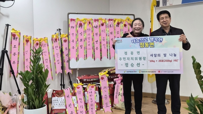여주시는 정순선 점동면 주민자치위원장이 지난 27일 열린 취임식을 통해 백미 10㎏ 26포를 점동면행정복지센터에 기부했다고 28일 밝혔다.