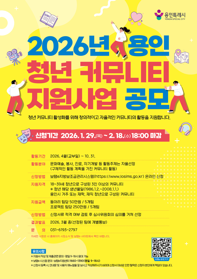 시는 3월 지원 대상팀을 최종 선정할 예정이다. 자세한 내용은 용인시 누리집, 용인청년포털(청년e랑), 보탬e 사이트에서 확인할 수 있다.