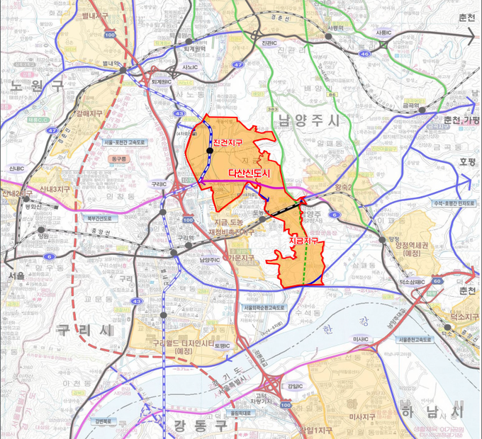 다산신도시는 남양주시 다산동 일원 약 475만㎡ 부지에 조성된 신도시로 진건·지금지구 등으로 구성돼 있다.