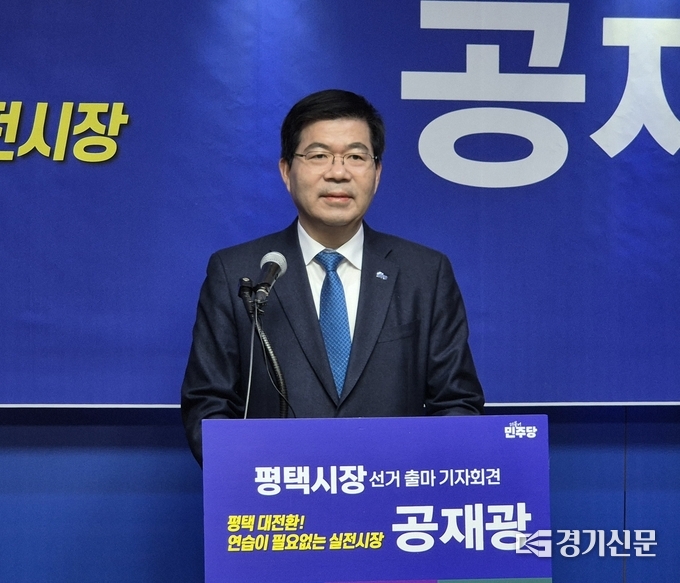 더불어민주당 공재광 전 평택시장이 10일 평택시청 브리핑룸에서 기자회견을 열고, 오는 6·3지방선거 평택시장 출마를 공식 선언했다.
