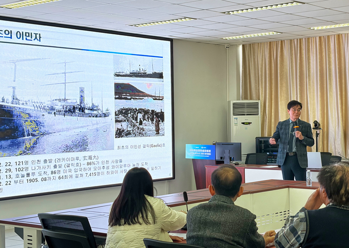학서광(郝耀光) 연태대 총장은 ‘건축의 미(建筑的美)’를 주제로 강의를 펼쳤다. 건축이 지닌 미적 가치와 공간의 의미를 살펴보고, 건축을 통해 문화와 도시의 정체성을 이해하는 시간을 가졌다.