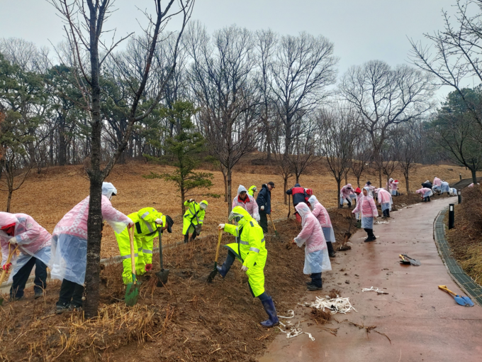 이날 행사는 봄비가 오는 가운데 초막골 생태공원내 초막동천폭포 녹지에서 공무원 등 70여 명이 참석해 진행됐으며 산수국, 층층나무 등 3000여 본의 나무를 심었다.