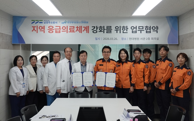 남양주소방서는 지난 26일 현대병원에서 중증응급환자의 신속한 처치와 효율적인 이송체계 구축을 위한 ‘중증응급환자 1차 진료권 확보 업무협약(MOU)’을 체결했다고 27일 밝혔다.
