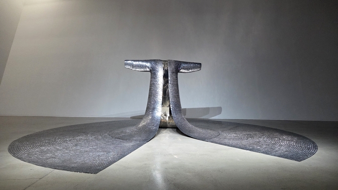 2층으로 올라가기 전 위치한 서도호의 'Some/One'은 수천 개의 인식표로 구성된 거대한 갑옷 형상으로, 하나하나의 인식표는 개인이 아닌 갑옷을 이루는 일부로서 작용한다.