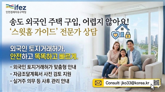 2일 인천경제청은 송도국제도시 내 외국인의 주택 구입 편의를 높이고 안정적인 정주 여건 조성을 위해 외국인 토지거래허가 상담 서비스 ‘스윗홈 가이드’를 본격 시행한다고 밝혔다.