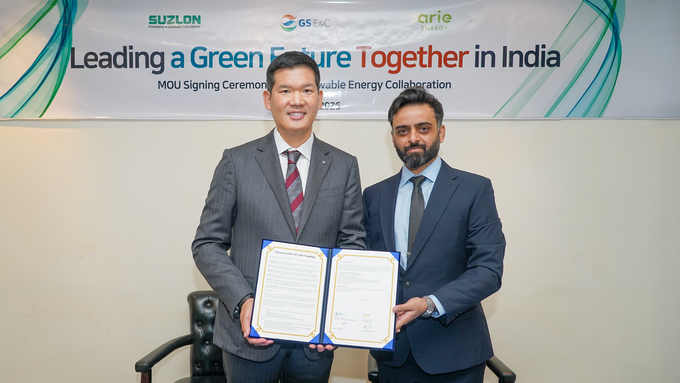 한편 인도 델리에서 열린 업무협약식에는 허윤홍 GS건설 대표와 비슈와지트 파르마르 아리 에너지 대표, 디네시 다야난드 자그달레 수즐론 에너지 사장 등이 참석했다.