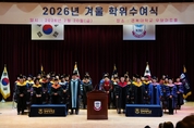 남양주 소재 경복대학교는 지난 20일 남양주캠퍼스 문화관 1층 우당아트홀에서 ‘2026년 겨울 학위수여식’을 개최했다고 23일 밝혔다. 이번 학위수여식은 졸업생과 학부모, 교직원이 참석한 가운데 3부로 나누어 진행됐다. 학위수여식에서는 학사학위 768명, 전문학사학위 1148명 등 총 1916명이 학위를 수여받으며 새로운 출발을 알렸다. 이날 시상식에서는 ▲우당대상에 간호학과 정서영, 소프트웨어융합과 김진용 ▲전체수석에 간호학과 황연진, 시각디자인과 이민규 학생이 각각 선정됐다. 외부 표창 수상자로는 ▲교육부장관상 유아교육학과 김도은 ▲한국전문대학교육협의회장상 작업치료학과 이지우, 복지행정학과 최나영, 소프트웨어융합학과 Reznichenko Viktoriia, 실용음악학과 신영서, 공연예술학과 김리한, 치위생과 최소윤, 의료미용과 김가영, 의료복지과 김낙규, 항공서비스과 이태우, 호텔관광과 이경미, 빅데이터과 Yagiz Furkan Beyazit, 공간디자인과 박소정,시각디자인과 권진영, 준오헤어디자인과 김민설 학생이 수상했다. 또,▲남양주시장상 유아교육과 박솔미 ▲포천시장상 물리치료과 김린, 영상미디어콘텐츠과 김혜진 ▲남양주시의회의장상 친환경건축과 장선호