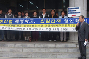 '고양시민대책위(준)'가 친일청산 및 과거청산을 위한 과거청산법 제정을 축구하고 나서 귀추가 주목된다. 고양시민대책위(준) 30여명은 6일 오전 현수막 등을 동원, 고양시청 의원회관 건물 앞에서 기자회견을 갖고 친일청산 및 과거청산을 위한 과거청산법 제정을 촉구했다. 이날 대책위(준)는 "지금도 일본의 ‘독도망동’ 동이 계속되고 있는 가운데 일본이 독도가 자기네 땅이라고 우기는 망동과 친일파 자식들이 국민 땅을 뺏어가는 망동이 크게 다르지 않다"고 분통해 했다. 또 이들은 일본이 교과서를 왜곡, 자국 어린이들에게 침략의 역사를 정당화하고 있다고 주장했다. 특히 항일유적지와 임진왜란 당시 대첩을 치룬 행주산성 사당 충장사 사적지에 친일장교출신 고 박정희의 글씨를 방치하는 등 우리의 역사를 스스로 웃음거리로 전락시키고 있다고 목소리를 높였다. 이들은 이어 지난 13년 동안 고양지역사회의 숙원인 금정굴 양민학살 진상규명이 아무런 진척도 보지 못하고 있다며 지난해 연말에 이어 지난2월 임시국회에서도 진상규명을 위한 과거청산법 제정이 무산되었고 4월 임시국회에서 어떻게 처리될지 모르는 상황이라며 답답함을 호소했다. 조영민(34) 고양시민대책위(준) 시민권리부장은 "친