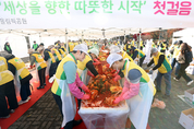 신천지예수교 증거장막성전 요한지파(이하 신천지 요한지파·지파장 성창호)가 지난 29일 수원시청 앞 올림픽공원에서 국가유공자와 보훈 가족을 위한 겨울맞이 김장 나눔 봉사를 펼쳤다고 1일 밝혔다. 특히 이번 봉사는 시온기독교선교센터 116기 수료생들이 입교 후 처음으로 참여한 봉사라는 점에서 의미를 더했다. 이날 봉사에는 수료생 100여 명을 포함해 약 200명이 참여했다. 이날 담근 약 2100kg의 김치는 국가유공자 500가구에 전달할 예정이다. 봉사자들은 지난 27일부터 이날까지 배추 수확부터 김장 재료 손질, 김장, 포장 등 전 과정에 참여하며 이웃사랑을 실천했다. 추가 김장 비용 또한 신천지 요한지파 성도들의 후원으로 마련했다. 이날 김장에 참여한 김은희(여·47)씨는 “하나님께 받은 큰 사랑을 이웃과 나누고 싶어 참여했다”며 “모두가 올겨울을 따뜻하고 행복하게 보냈으면 한다”고 말했다. 또 다른 참여자 유소연(여·32) 씨는 “예수님의 가르침을 몸소 실천할 기회가 생겨 감사하다”면서 “신앙인으로서 당연히 해야 할 일을 한 것이라 생각한다”고 전했다. 성창호 지파장은 “이번 김장 나눔은 하나님과 예수님께 받은 은혜에 감사하는 마음으로, 그 사랑을 지역사