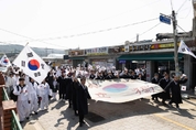 연천군 백학면 항일독립운동기념탑에서 지난 21일 107주년 두일리장터 항일만세운동 기념식이 열렸다. 이번 기념식은 백학면 주민자치회가 주관했으며, 김덕현 연천군수, 김성원 국회의원, 박양희 연천군의회 운영위원장, 이준용 문화원장을 비롯한 연천군의 주요 인사와 독립운동가 후손 10여 명, 지역 주민 등 400여 명이 참석했다. 기념식은 백학면 주민자치 풍물패의 흥겨운 공연으로 시작됐다. 이후 정응화 백학면 주민자치회장이 개회를 선언한 뒤, 독립운동가 후손이 독립선언문을 낭독하며 1919년 연천 백학에서 울려 퍼졌던 독립운동의 함성을 재현했다. 참석자들은 모두 태극기를 흔들며 대한독립 만세를 외쳤고, 선열들의 숭고한 희생을 기리는 시간을 가졌다. 특히, 이날 기념식에서는 항일독립운동기념탑에서 백학광장까지 태극기 퍼레이드가 진행되어 주민들과 학생들이 함께 태극기를 들고 행진하며 나라 사랑의 의미를 더욱 깊이 새겼다. 백학면은 1919년 3월 21일 연천 지역에서 최초로 만세운동이 일어났던 지역으로, 이날 기념식은 지역 주민들과 함께 독립운동의 역사적 의미를 되새기고, 선열들의 희생정신을 기리는 뜻깊은 행사로 마무리됐다. 김덕현 연천군수는 기념사를 통해 “연천군 백