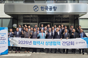 한진그룹 한국공항㈜는 협력사들과의 굳건한 상생 협력을 위해 머리를 맞댔다. 지난 15일 한국공항 경영진을 비롯해 16개 협력사 대표 등 총 26명이 참석한 가운데 ‘2026년 협력사 상생협력 간담회’가 진행됐다. 이번 간담회는 한국공항 협력사 대표자들과 상호 소통하며 자유로운 분위기 속에서 파트너십을 다지는 자리로 마련됐다. 또한 논의된 사항을 바탕으로 상생협력을 위한 다양한 노력을 지속해 나갈 계획이다. 한국공항 이수근 사장은 인사말을 통해 “어려운 환경 속에서도 현장 안전과 운영 안정화를 위해 힘써준 협력사들의 노고에 감사드린다”며 “앞으로도 긴밀한 소통을 통해 파트너십을 더욱 공고히 하고 동반 성장을 위한 협력을 지속해 나가겠다”고 밝혔다. 한국공항은 항공기 지상조업 서비스를 주력으로 하는 국내 최대 지상조업 전문회사로, 대한항공을 비롯한 50여 개 항공사에 서비스를 제공하고 있다. 또한 한진제주퓨어워터, 제동한우, 물류장비 렌탈사업, 세탁사업 등 다양한 분야에서 사업을 펼치고 있다. [ 경기신문 / 인천 = 박영재 기자 ]