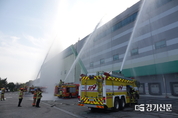 안성소방서는 5일 미양면 강덕리에 위치한 농협경제지주 안성물류센터에서 대형화재 상황을 가정한 유관기관 합동 소방훈련을 실시했다. 이번 훈련은 대규모 물류창고의 특성상 화재 발생 시 인명피해가 클 수 있다는 점을 고려해, 배연 전술과 다수사상자 대응능력 향상에 중점을 두고 진행됐다. 현장에는 안성소방서 긴급구조지휘대를 비롯해 구조·구급대, 안성시보건소, 안성병원·성모병원 의료진, 의용소방대 등 60여 명이 참여했으며, 지휘차·펌프차·화학차·조연차·구급차 등 17대의 소방차량이 투입됐다. 훈련은 지게차 배터리 충전소 폭발로 인한 화재와 다수의 부상자 발생 상황을 가정해 실시됐다. 물류센터 자위소방대의 초기 소화 및 인명 대피를 시작으로, 소방대의 화재 진압과 구조 활동, 임시 응급의료소 운영 등 단계별 대응이 실제 상황처럼 전개됐다. 특히 송풍기와 조연차를 활용한 양압식 배연 전술을 적용해 연기 확산을 차단하고, 화재층 내 구조대원의 안전 확보를 동시에 수행했다. 훈련 종료 후에는 강평회를 통해 개선이 필요한 사항을 점검하고, 각 기관 간 현장 협조체계와 정보 공유 시스템을 더욱 강화하는 시간을 가졌다. 신인철 안성소방서장은 “물류창고 화재는 구조가 복잡하고 피