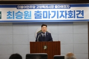 최승원 전 국토교통부 장관정책보좌관이 24일 고양시의회 영상회의실에서 기자 회견을 열고 고양시장 출마를 공식 선언했다. 이날 최 출마예정자는 이재명 정부 장관정책보좌관으로 주택과 교통정책 실무를 담당했던 경험을 언급하며 “고양시의 미래에 대해 치열하게 고민했고 이를 통해 교통 및 주거에 대한 고양시의 핵심의제를 명확히 이해할 뿐만 아니라 이렇게 형성된 중앙정부와의 실질적 네트워크는 고양시 발전을 위한 핵심 자산으로 요긴하게 쓰겠다”고 밝혔다. 이어 “가장 강력한 무기는 중앙정치와 지방행정을 모두 섭렵한 ‘입체적 커리어’에 있다“며 ”민주주의자 김근태 의장을 수행하며 정치를 배우기 시작했고 유은혜 국회의원실, 우원식 국회의장실을 거치며 중앙정치 감각을, 경기도의원 및 파주도시관광공사 사장으로서 지방행정의 실무를 직접 경험했다“고 부연했다. 시의 최대 현안인 ‘주택’과 ‘교통’ 분야에 대해 ▲기회발전특구 등 ‘3대 성장 코어’ 추진 ▲3호선 경의선 직결 및 9호선 대곡 연장 ▲3대 대심도 추진 등의 공약을 내놓았다. 또한 도시재생공사를 설립해 재건축과 재개발을 ‘원스톱’으로 지원하겠다고 말했다. 최 출마예정자는 대통령의 ‘기본사회’ 철학을 고양시정에 녹여내겠다는