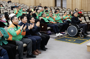 화성특례시의회는 지난 28일 화성시청 대강당에서 열린 ‘화성시 지역자율방재단 이·취임식’에 참석했다. 이날 행사에는 배정수 의장을 비롯해 김상균·이용운 시의원이 참석했으며, 지역자율방재단 단원 등 약 100명이 함께했다. 행사는 신상희 단장 이임사와 공로패 수여, 신임 단장 임명장 수여 순으로 진행됐다. 이번 이·취임식은 ‘화성시 지역자율방재단 운영 등에 관한 조례’에 따라 추진됐다. 지역자율방재단은 지난 13일 지역자율방재협의회를 통해 단장을 선출했으며, 읍·면·동 대표와 부대표도 절차에 따라 선출됐다. 신임 단장에는 한상현 단장이 임명됐고, 부단장에는 전승호·정영지 씨가 임명됐다. 남양읍과 동탄1·2·5·6·7·8·9동, 병점1·2동, 봉담읍, 향남읍 등 17개 읍·면·동 대표와 부대표에게 임명장이 수여됐다. 배정수 의장은 행사에서 “지역자율방재단은 재난 발생 시 현장에서 활동하는 조직”이라고 말했다. 화성특례시의회는 지역자율방재단과 협력해 재난 대응 활동을 이어갈 계획이라고 밝혔다. [ 경기신문 = 최순철 기자 ]