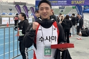 "선배님을 생각하며 포기하지 않고 열심히 달렸습니다. 선배님, 빨리 나아서 같이 뛰어요." 22일 수원종합운동장에서 열린 2026 경기수원국제하프마라톤 대회에서 수원사랑마라톤클럽(이하 수사마) 양도준(30)씨가 감동적인 소감을 전하며 참가자들의 심금을 울렸다. 이날 양 씨는 10㎞ 종목에 참가해 안정적으로 마라톤을 마치고 단상에 올라 수상소감을 밝혔다. 그는 "2026 경기수원국제하프마라톤이 수원, 제 홈그라운드에서 개최돼 수사모 회원으로서 이 기회를 놓치면 안된다는 생각에 참여했다"고 말했다. 이어 양 씨는 "존경하는 선배님이 몸이 아프셔서 이번 대회에 참여하지 못했다"며 함께하지 못한 한 선배를 언급하며 "선배를 생각하며 포기하지 않고 끝까지 달렸다"고 전했다. 또 "저의 마라톤 이야기는 이제 시작이라고 생각한다. 선배님이 몸을 회복해 다시 함께 달릴 날을 기다리고 있다"고 소망을 강조했다. 마지막으로 양 씨는 "부족한 저에게 러닝의 재미와 의미를 알려주신 선배님께 감사드린다. 인정받기 위해 앞으로도 더 노력하겠다"고 덧붙였다. [ 마라톤 특별취재팀 ]