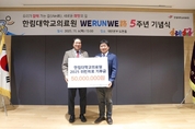 한림대학교의료원이 비대면 기부 마라톤 ‘위런위로(WeRunWe路)’ 5주년을 맞아 모금액 5000만 원 전액을 화상 피해 소방관 치료 지원에 기부했다. 위런위로 캠페인은 2021년부터 매년 이어지고 있는 의료원의 대표 사회공헌 활동으로, 화상 환자와 소방관 치료를 지원해왔다. 의료원은 지난 11월 6일 서울 영등포구 학교법인일송학원 도헌홀에서 ‘위런위로 5주년 기념식’을 열고 모금액 전액을 한림화상재단에 전달했다. 행사에는 윤희성 학교법인일송학원 이사장, 허준 한림화상재단 이사장, 박성진 기획조정실장, 오다정 닥터솔루션 대표 등 주요 보직자 및 후원사 관계자 40여 명이 참석했다. 기념식에서는 위런위로 캠페인의 5년 활동을 정리한 기념 영상이 상영됐으며, 한림화상재단은 누적 기부액 1억 8000만 원의 사용 내역을 공유했다. 기부금은 화재 현장에서 피해를 입은 소방관들의 의료비와 재활 치료, 트라우마 회복 프로그램 등에 사용될 예정이다. 아울러 이번 행사에서는 5주년 기념식과 함께 처음으로 대면 러닝 행사도 진행됐다. 의료원 주요 보직자와 각 부서 팀장 등 80여 명이 양화한강공원 일대에서 3㎞ 걷기 또는 5㎞ 달리기 코스를 선택해 완주하며 기부에 동참했다.