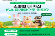 한국투자증권이 뱅키스 ISA 100만 계좌 돌파를 기념해 고객 대상 대규모 리워드 이벤트를 진행한다. 한국투자증권은 자사 비대면 채널 ‘뱅키스(BanKIS)’를 통해 개설된 ISA(개인종합관리계좌) 중개형 계좌 수가 100만을 넘어선 것을 기념해 오는 3월 31일까지 고객 감사 이벤트를 실시한다고 밝혔다. 이번 이벤트는 뱅키스 ISA 중개형 계좌를 이용하는 고객 누구나 참여할 수 있으며 계좌 개설, 입금, 거래 등 일정 조건을 충족하면 1인당 최대 160만 원 규모의 리워드가 제공된다. ISA 중개형 계좌는 투자자가 직접 다양한 금융상품에 투자하면서 절세 혜택까지 누릴 수 있는 계좌로 꾸준한 관심을 받고 있다. 한국투자증권은 고객 편의성을 높이기 위한 서비스 개선도 이어가고 있다. 최근 모바일 앱에 도입된 ‘ETF 마켓’ 기능을 통해 ISA 계좌에서 투자 가능한 상품을 직관적으로 확인할 수 있도록 했으며, 투자 목적에 맞는 상품을 쉽게 찾을 수 있도록 큐레이션 기능도 강화했다. 한국투자증권 관계자는 “고객 성원에 보답하기 위해 다양한 혜택을 마련했다”며 “앞으로도 사용자 중심의 투자 환경을 지속적으로 고도화해 나갈 것”이라고 밝혔다. [ 경기신문 = 성은숙…