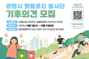 광명시에서 쓰레기를 줍는 개가 기후지킴이로 나서는 새로운 녹색 캠페인을 시작한다. 시는 1일부터 반려견과 산책하며 쓰레기를 줍는 친환경 활동 ‘펫플로깅 봉사단(1기) 기후의견(犬)’을 모집한다고 밝혔다. ‘기후의견’은 광명시의 기후활동 조직 ‘기후의병’에서 착안한 이름으로, 기후를 지키는 의로운 반려견이라는 의미를 담았다. 시민 생활 속 탄소중립 실천을 확산하고 올바른 반려문화 정착을 목표로 한다. 봉사단은 오는 11월 9일 발대식을 시작으로 내년 9월까지 약 1년간 활동한다. 주요 활동은 ▲연 4회의 펫플로깅 ▲유기견 입양 홍보 ▲펫티켓 캠페인 등이다. 반려견과 함께 공원과 광장 등에서 쓰레기를 줍고, 시민들에게 유기견 입양과 책임 있는 반려문화를 알리는 활동을 펼친다. 모집은 10월 31일까지 진행하며, 광명시에 거주하고 동물등록을 마친 반려견 보호자 100명을 선착순으로 모집한다. 신청은 네이버폼에서 가능하며, 최종 선정자는 11월 4일 개별 통보한다. 참여자에게는 기후의견 활동복과 기후의병 탄소저금통 포인트를 제공하며, 1365 자원봉사 포털에 봉사시간이 등록된다. 활동 실적이 우수한 참여자에게는 기념품도 지급한다. 박승원 광명시장은 “펫플로깅 봉사단